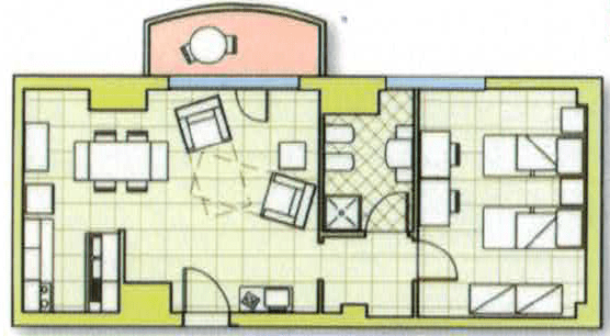 6 bilocali “Tiziano” con zona giorno attrezzata di cucina con terrazzino, bagno e camera da letto con 2 letti singoli convertibili in matrimoniale e la nostra penthouse “Botticelli” che oltre a zona giorno, camera e bagno vanta una vasta terrazza panoramica su 4 lati che offre una spettacolare vista sulle colline del Valdarno toscano.